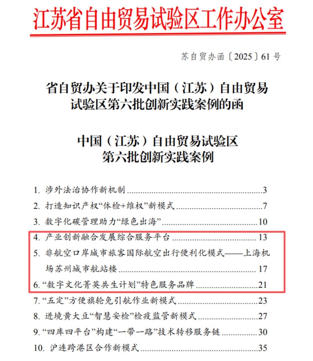 近期,省自貿(mào)辦發(fā)布中國(江蘇)自由貿(mào)易試驗區(qū)第六批創(chuàng)新實踐案例,蘇州片區(qū)有3項案例入選。