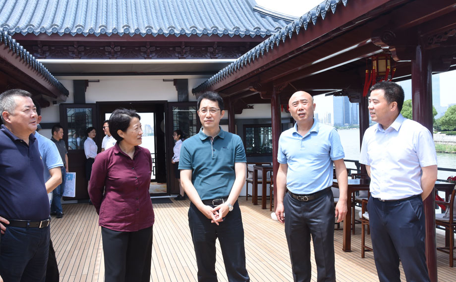 CPC SIP Working Committee secretary Wu Qingwen and his contingent visited SIP’s Jinji Lake and its surroundings on June 19 for a survey on the water quality and environment there.