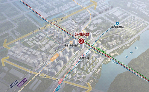 The Suzhou East Railway Station is scheduled to be set up in the core area of Sangtian Science Island in SIP. With four platforms, it will be an underground high-speed railway hub linking with a number of subway lines and intercity railway lines. It is expected to serve about 180,000 passengers each day after it comes into operation.