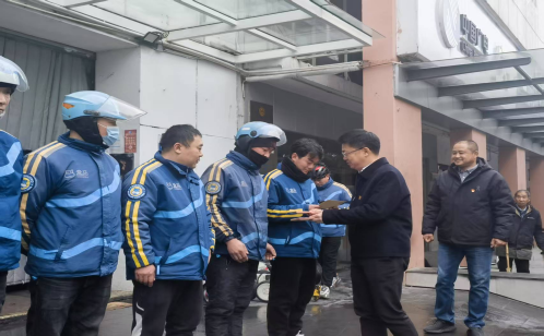 為積極發(fā)揮黨組織把方向、聚人心、促發(fā)展作用,不斷提升外賣行業(yè)群體獲得感、幸福感、歸屬感,近日,蘇州工業(yè)園區(qū)市場監(jiān)督管理局攜手外賣行業(yè)黨委、外賣行業(yè)聯(lián)合工會開展2025年“暖新同行”春節(jié)慰問活動,為在嚴寒中奔波的外賣配送員送去溫暖與關(guān)懷。