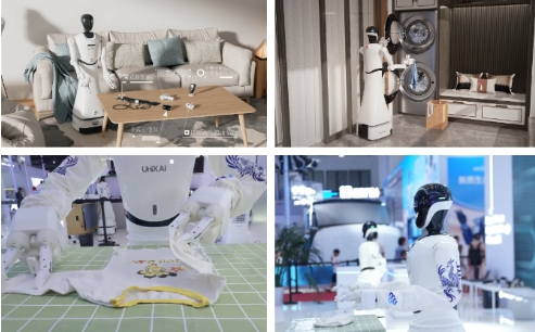 在優理奇科技(UniXAI)辦公室內,Wanda和Martian兩款人形機器人,正在廚房、臥室等家庭場景中模擬運作。即便是拿取嫩豆腐、制作漢堡、清洗碗碟、折疊衣物等精細操作,它們都能輕松完成。