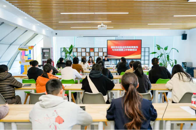 為進一步提升園區(qū)綜合執(zhí)法系統(tǒng)新聞宣傳和黨政信息工作質(zhì)效,培養(yǎng)能寫、善講、會干的過硬本領(lǐng),近日,園區(qū)綜合執(zhí)法系統(tǒng)新聞宣傳與黨政信息工作專題培訓(xùn)會在“繡美園區(qū)”城市管理實踐基地順利舉辦。蘇州市城市管理局辦公室主任徐斯成、園區(qū)黨政辦信息處副處長卞振現(xiàn)場授課,園區(qū)綜合執(zhí)法局機關(guān)各處室、各直屬單位相關(guān)工作人員參加培訓(xùn)。