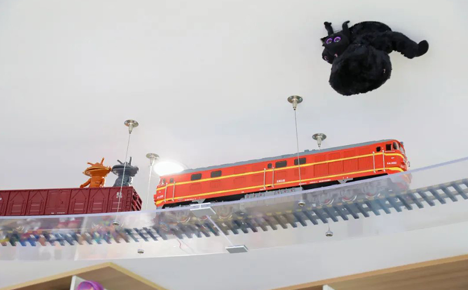 蘇玩博本次的升級(jí),不僅將原本的二樓打造為被藏品填滿(mǎn)的藝術(shù)空間,還對(duì)一樓進(jìn)行了特別改造。踏入博物館那一刻記得抬頭看:嘟嘟!“天花板火車(chē)”發(fā)車(chē)?yán)玻胺降秸荆宏?yáng)澄湖半島站。火車(chē)沿路還將偶遇眾多小動(dòng)物。