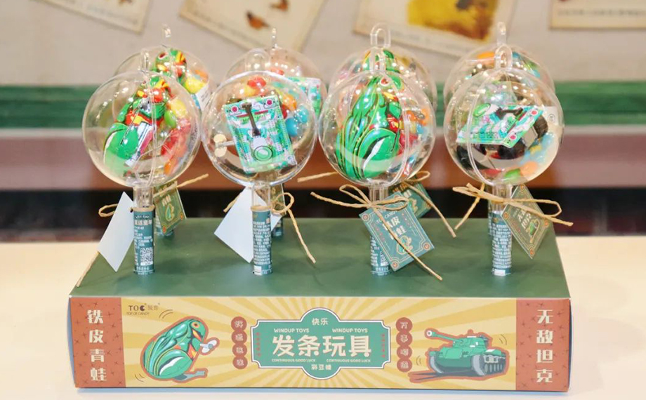 除了館藏上萬(wàn)件玩具之外,蘇玩博還特別推出文創(chuàng)產(chǎn)品。鐵皮青蛙樣式的發(fā)條玩具彩豆糖首次亮相,玩玩具+吃糖果一次性滿(mǎn)足。陽(yáng)澄湖大閘蟹玩偶萌趣十足,你還可以手動(dòng)遙控玩偶,聽(tīng)大閘蟹讀古詩(shī)或講故事。