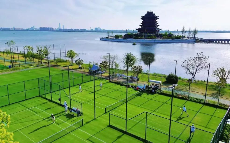綠茵之外靜臥著的兩片網(wǎng)球場(chǎng),是目前國(guó)內(nèi)最高標(biāo)準(zhǔn)的天然草網(wǎng)球場(chǎng)之一,也是長(zhǎng)三角地區(qū)第二個(gè)按照溫網(wǎng)級(jí)別建造的濱湖場(chǎng)地。在此揮拍,仿佛穿越至網(wǎng)球界殿堂級(jí)賽事現(xiàn)場(chǎng),國(guó)際范兒十足。吳尊、劉畊宏、鄭愷等明星也曾攜親友前來(lái)打卡體驗(yàn)。