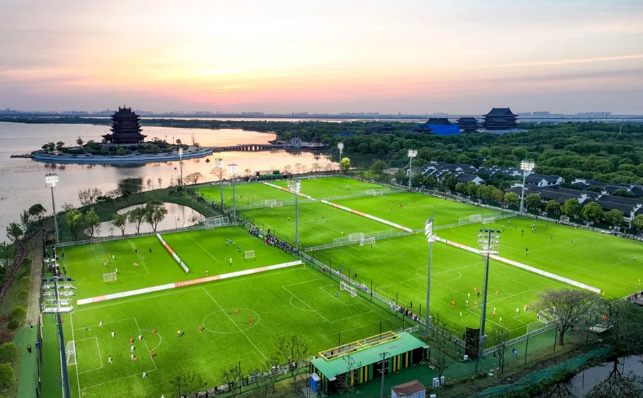 公園內(nèi)5片國(guó)內(nèi)最高標(biāo)準(zhǔn)的濱水天然草足球場(chǎng),按照“世界眼光、國(guó)際標(biāo)準(zhǔn)、蘇州特色、園區(qū)品質(zhì)”打造,球場(chǎng)評(píng)分均達(dá)到了FIFA國(guó)際足聯(lián)90分以上。草坪選用美國(guó)ITGAP認(rèn)證的運(yùn)動(dòng)型狗牙根TifSport,配合專業(yè)照明和配套設(shè)施,堪稱青少年足球的“夢(mèng)工廠”。