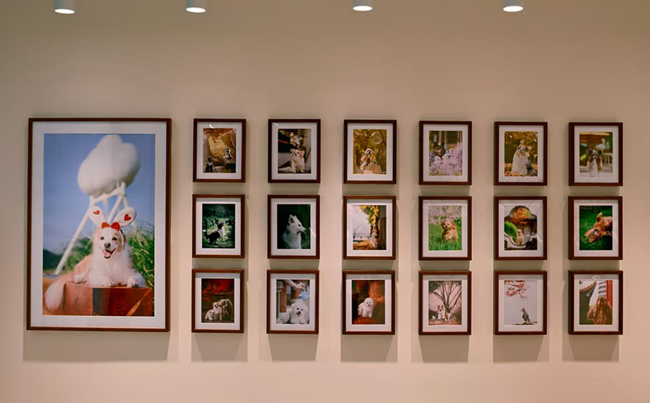 不同于“初二家”的萌趣溫馨,隔壁的“芒果寵物攝影”則是滿滿的文藝范兒和“ins風(fēng)”,店內(nèi)的墻上掛滿了毛孩子們?cè)诟鞯厝鰵g的藝術(shù)寫真,內(nèi)景棚也根據(jù)不同主題布置得十分精美。“我們的攝影師擁有豐富的寵物拍攝經(jīng)驗(yàn),并且會(huì)基于每只寵物的習(xí)性進(jìn)行引導(dǎo)拍攝。”品牌主理人蝦仁認(rèn)為,家長(zhǎng)與毛孩子相處的每一個(gè)瞬間都是值得被記錄的幸福時(shí)刻:“我們想用影像記錄下毛孩子們的美好。”