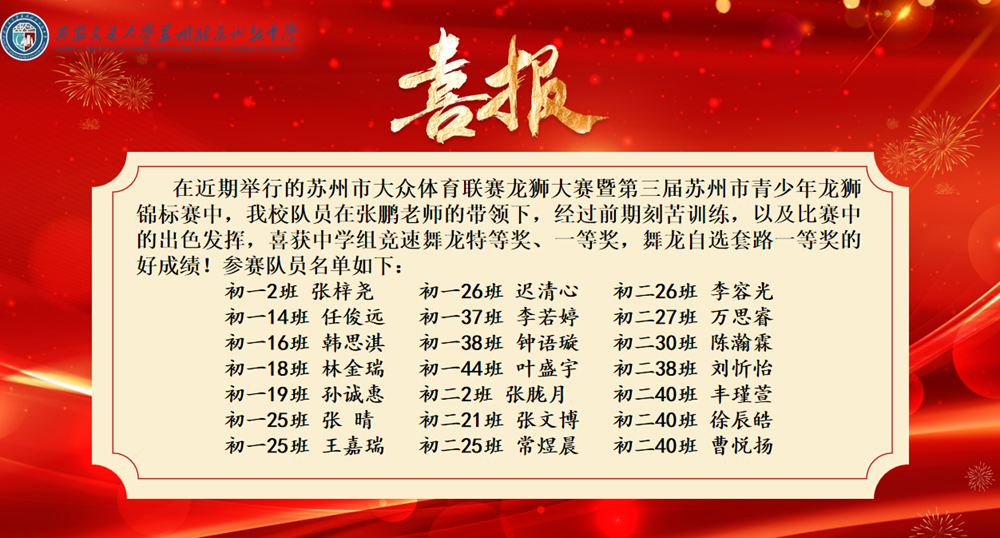 每一次騰躍,都是日夜打磨的回響。接到比賽通知后,龍獅隊(duì)的同學(xué)們利用放學(xué)后的課余時間加緊備戰(zhàn),從基礎(chǔ)動作打磨到套路細(xì)節(jié)優(yōu)化,從器材檢查維護(hù)到團(tuán)隊(duì)默契培養(yǎng),每一個環(huán)節(jié)都精益求精。雖然天氣嚴(yán)寒、訓(xùn)練條件有限,但在張鵬老師的悉心指導(dǎo)與帶領(lǐng)下,隊(duì)員們克服體能與技術(shù)雙重挑戰(zhàn),始終以飽滿的熱情投入訓(xùn)練,用汗水澆灌出勝利的果實(shí)。作為曾在蘇州市首屆、第二屆龍獅賽事中屢獲佳績的優(yōu)秀隊(duì)伍,西附初中龍獅隊(duì)此次再度登頂,彰顯了學(xué)校在非遺文化傳承與素質(zhì)教育融合方面的顯著成效。